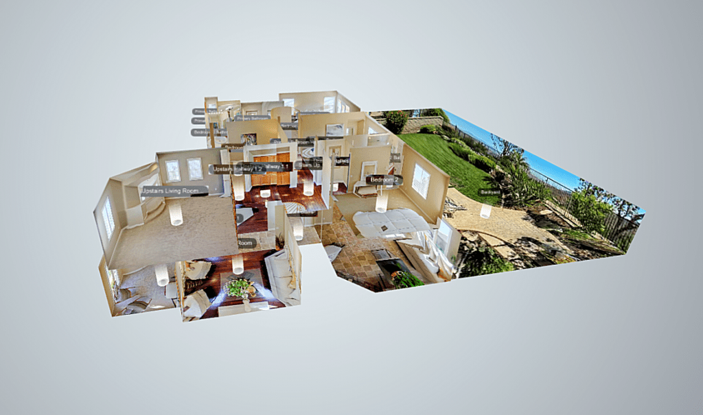 The 3D Dollhouse shows the property with all images connected together that have fully interactive room labels for the virtual walkthrough experience.